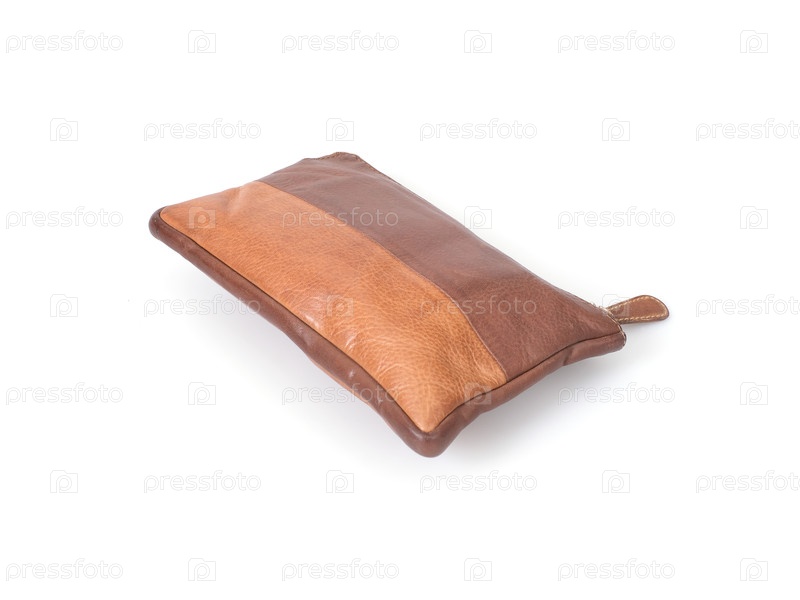 Косметическая кожаная сумка изолирована на белом фоне