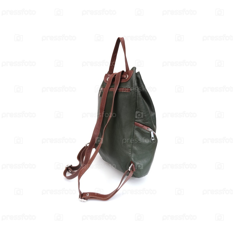 Красивый кожаный зеленый рюкзак изолирован на белом фоне