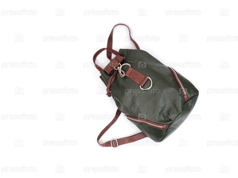 Красивый кожаный зеленый рюкзак изолирован на белом фоне