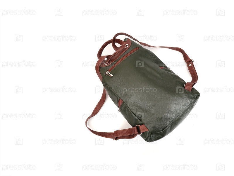 Красивый кожаный зеленый рюкзак изолирован на белом фоне
