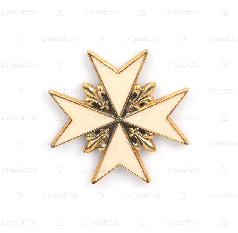 Сувенир (магнит) в виде мальтийского креста выделен на белом фоне