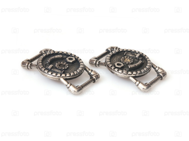 Металлическая ремневая запорка в стиле Steampunk с шестернями и трубами, изолированными на белом фоне, чрезвычайно высокое разрешение