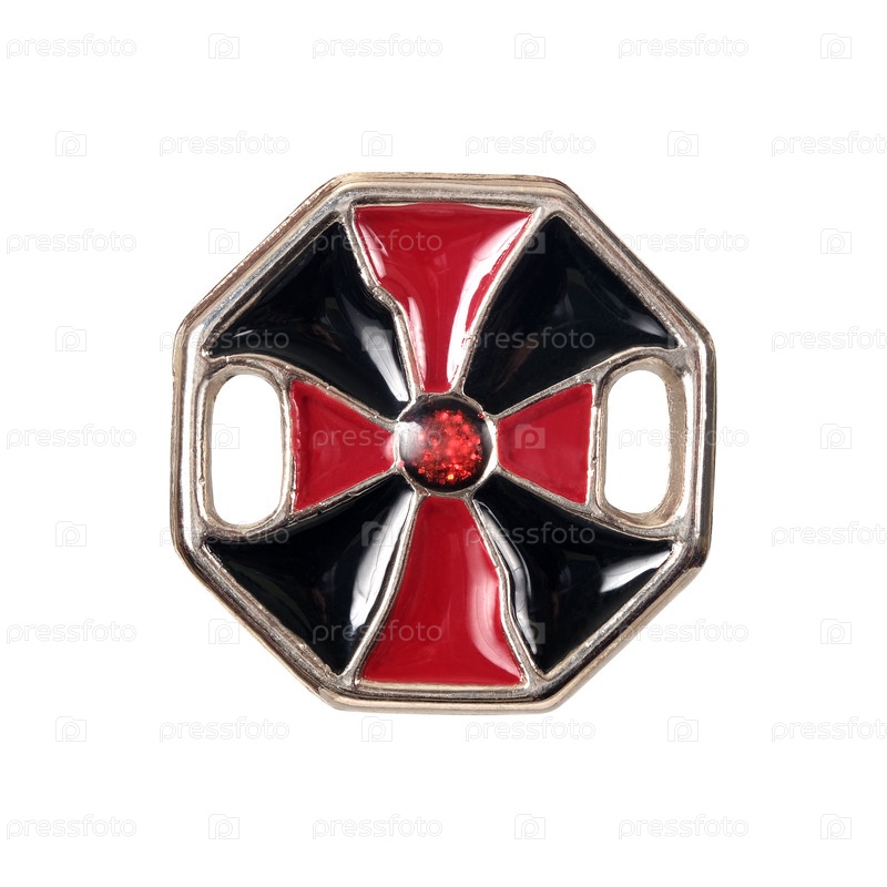 Геометрический эмалированный поперечный пластырь с шнуровыми петлями изолирован на белом фоне