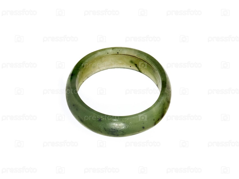 Китайское зеленое натуральное нефритовое кольцо изолировано на белом фоне