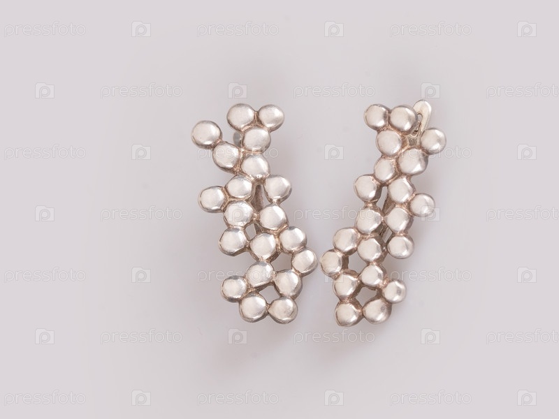 Серебряные круглые серьги изолированы на белом фоне