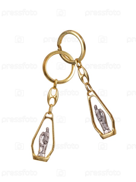 Золотая цепочка с фигурами Святой семьи, изолированной на белом фоне