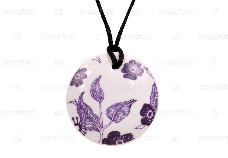Порцелановый круглый подвесок с цветочным орнаментом, изолированный на белом фоне