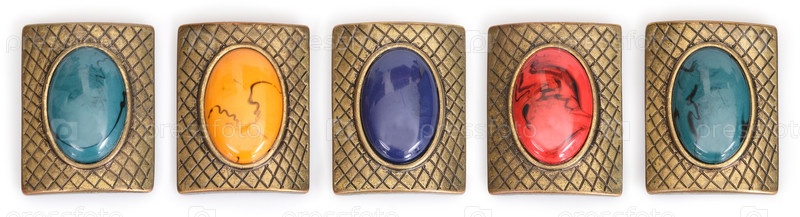 Детали золотого браслета с цветными драгоценными камнями, изолированные на белом фоне