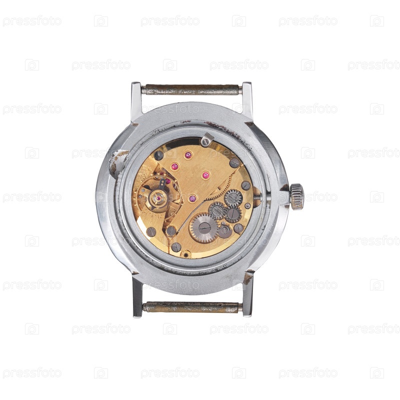 Старые механические часы изолированы на белом фоне