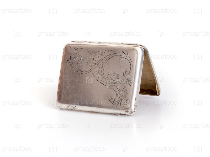 Античная серебряная сигарета с рубиновым замком, изолированной на белом фоне