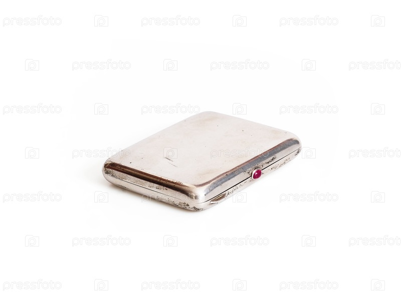 Античная серебряная сигарета с рубиновым замком, изолированной на белом фоне