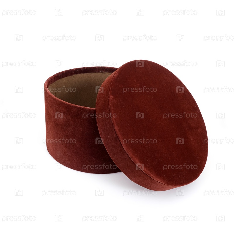 Бархатная круглая коробка для хранения упаковки, изолированная на белом фоне