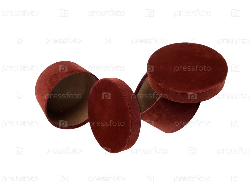 Бархатная круглая коробка для хранения упаковки, изолированная на белом фоне
