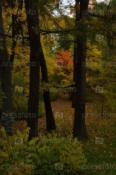 Осенний ботанический сад Петра Великого в Санкт-Петербурге: яркие листья деревьев, листопад