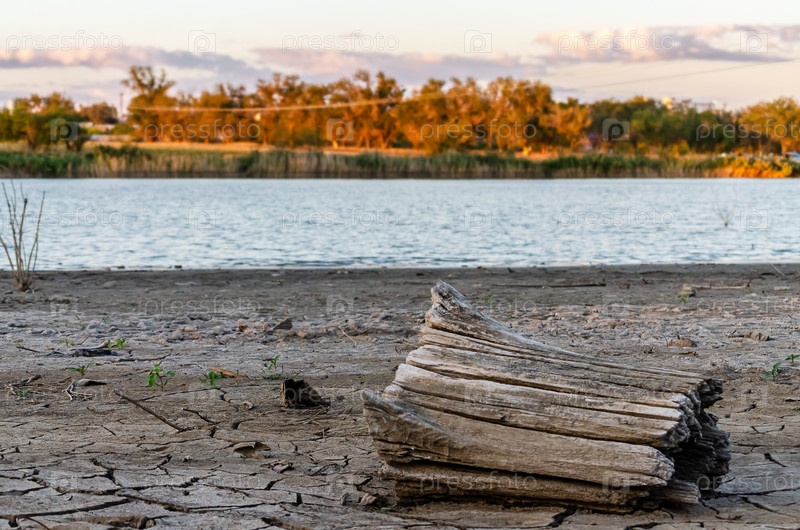 Сухое дно: застрял на трещинах земли возле озера