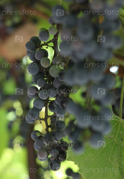 Группа темных виноградников висит на ветке