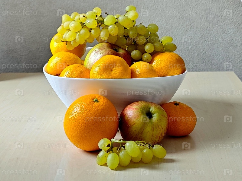 Тарелка с фруктами: апельсин, мандарин, яблоко, виноградный городок. Фруктовая тарелка: оранжевый, мандариновый, яблочный, гробы