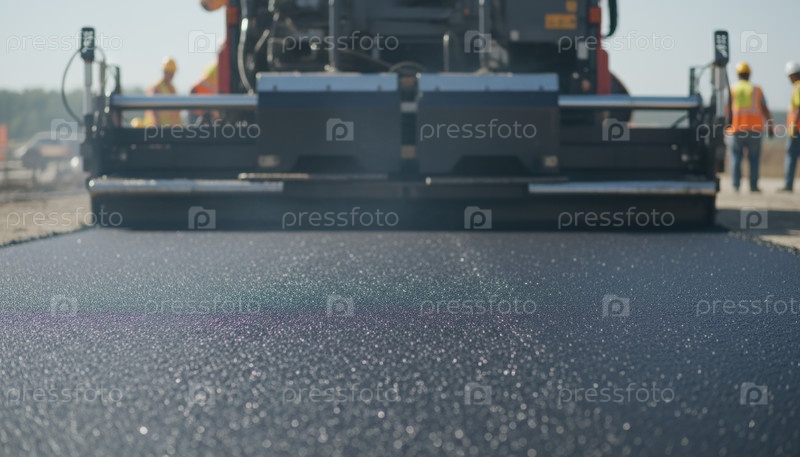 Свежий асфальт прокладывается автомобилем в ясный день, чтобы показать расширение инфраструктуры.Прогресс общественных работ и развитие современного транспорта
