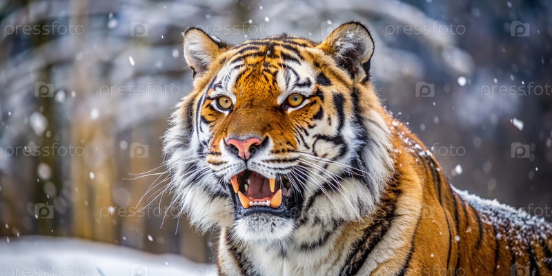 Сибирский тигр стоит в снегу, генерируя ИИ