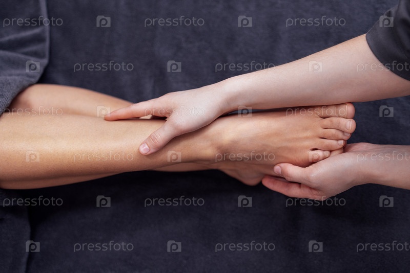 Азиатская женщина получает расслабляющий массаж ног от квалифицированного терапевта, показывая нежные руки и спокойную атмосферу, поощряя оздоровление и практики самопомощи для релаксации