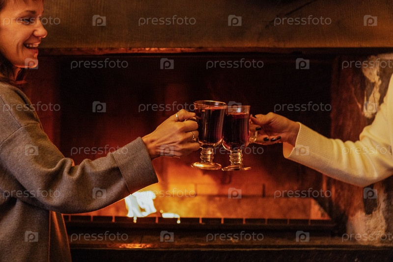 Девушки в свитерах празднуют праздничное воссоединение и пьют острый горячий рождественский напиток на домашней вечеринке