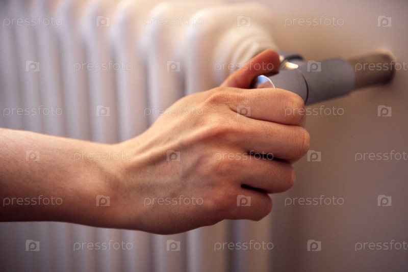 Рука регулирует клапан радиатора, демонстрируя процесс контроля температуры в уютной внутренней среде, подчеркивая тепло и комфорт в домашних жилых помещениях