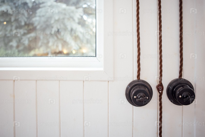 Система старинных каталок, установленная на белой деревянной стене рядом с окном, демонстрирует рустический шарм и сложные элементы дизайна, улучшая общую эстетику внутреннего пространства