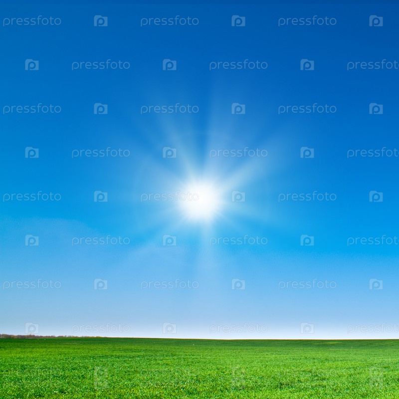 Красивый пейзаж, зеленая трава, голубое небо