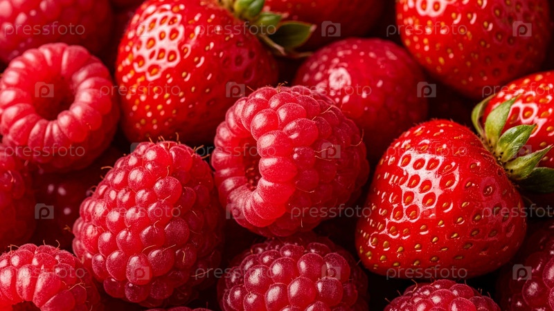 Малина и клубника вместе на фоне