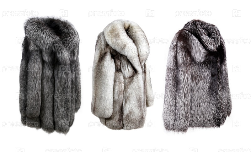 Декоративное женское меховое пальто из белой лисистой шерсти, выделенное на белом фоне