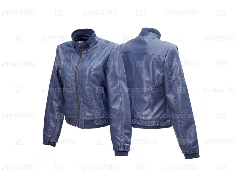 Синяя короткая кожаная куртка изолирована на белом фоне