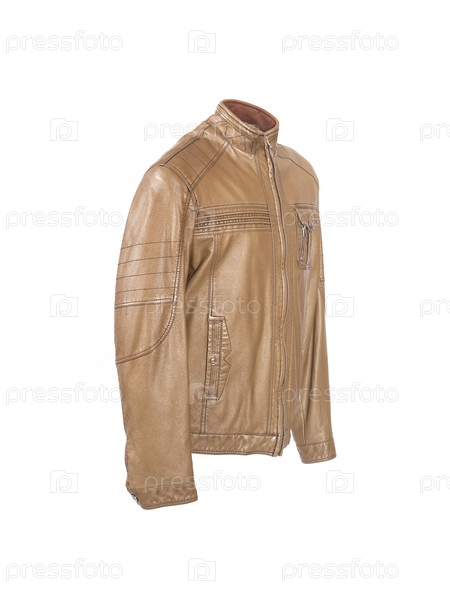 Короткая кожаная куртка песчаного цвета, изолированная на белом фоне