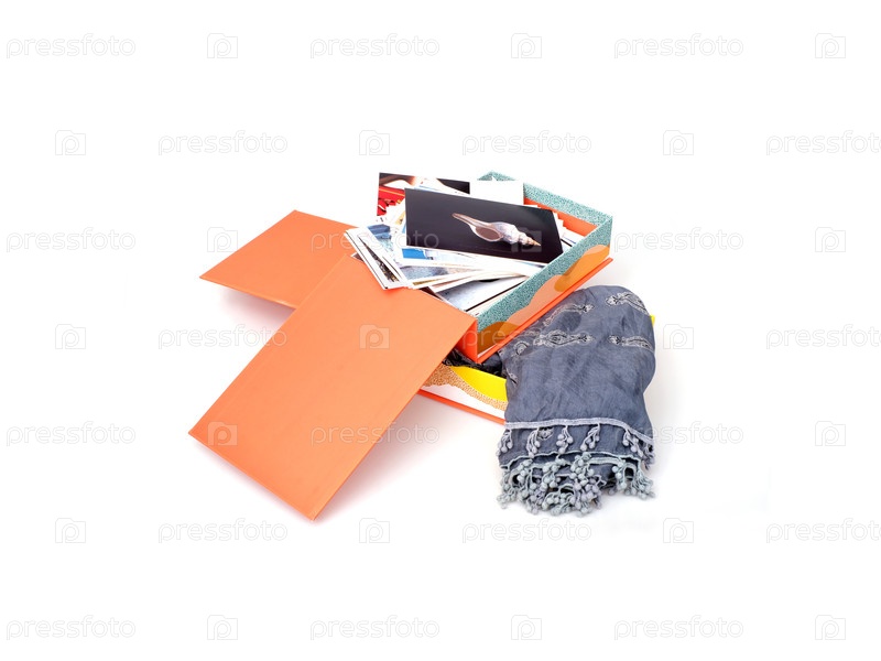 Две оранжевые коробки с драгоценностями и ювелирные шарфы изолированы на белом фоне