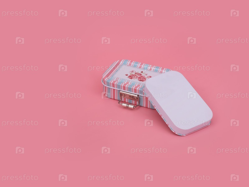Металлическая ювелирная коробка изолирована на розовом фоне