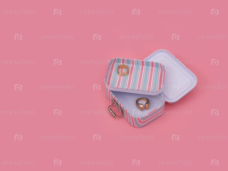 Металлическая ювелирная коробка изолирована на розовом фоне