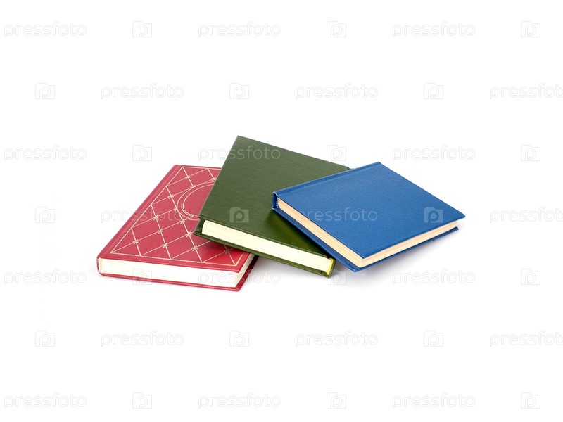 Куча красных, зеленых и синих книг изолирована на белом фоне