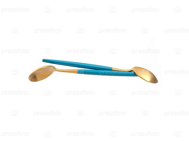 Красивая золотая чайная ложка с бирюзовой ручкой, изолированной на белом фоне