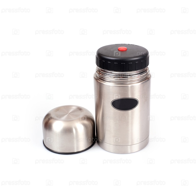 Металлический термос изолирован на белом фоне