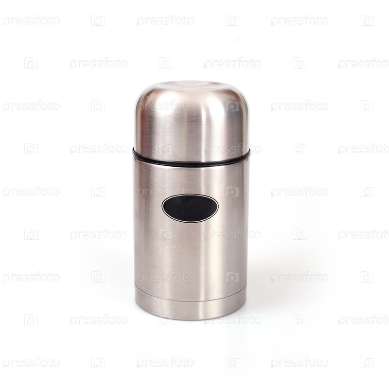 Металлический термос изолирован на белом фоне