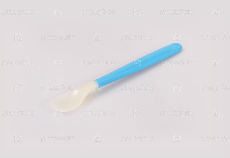 Детская пластиковая ложка изолирована на белом фоне