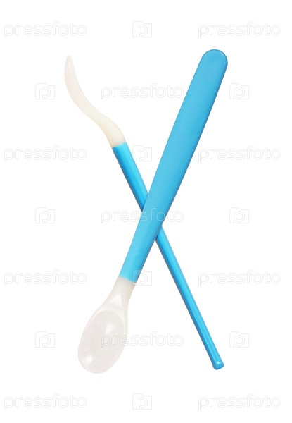 Две детские пластиковые ложки изолированы на белом фоне