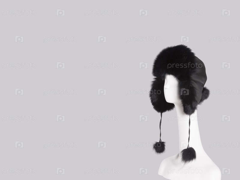 Голова манекена с меховой шляпой, изолированной на сером фоне
