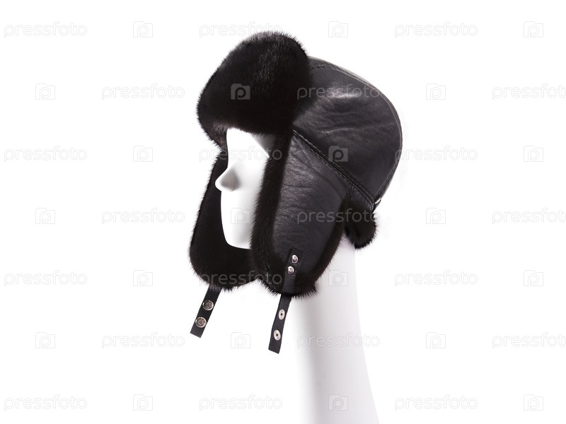Голова манекена с меховой шляпой, изолированной на белом фоне
