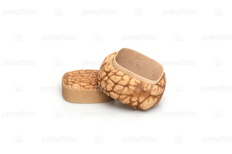 Настоящая кожаная коробка для ювелирных украшений, изолированная на белом фоне