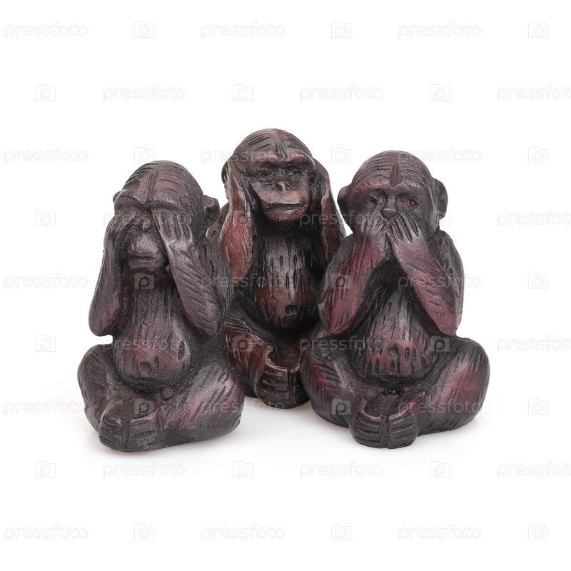 Куклы трех мудрых обезьян изолированы на белом фоне