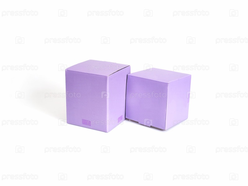 Две фиолетовые коробки для подарков, изолированные на белом фоне