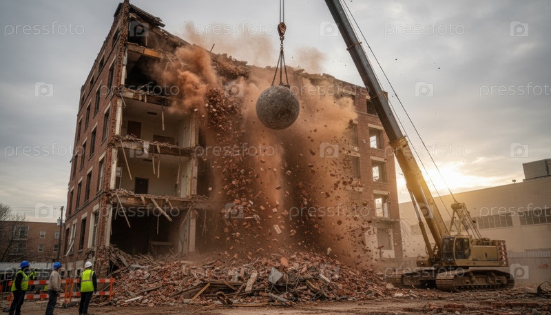Старый шарик для сноса зданий, подчеркивающий циклы городской перепланировки и усилий по реконструкции, формирующих современные городские ландшафты