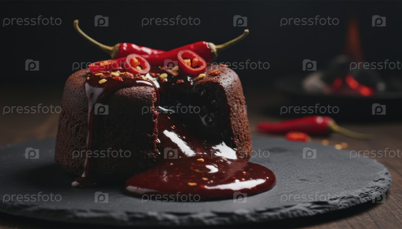 Богатый лавовый шоколадный торт, покрытый чили-перец представляет собой приключенческие кухонные тенденции, термоядерные десерты, смелое исследование вкусов и растущий интерес к пищевым инновациям для гурманов