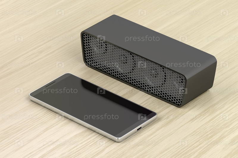 Черный смартфон и динамик Bluetooth