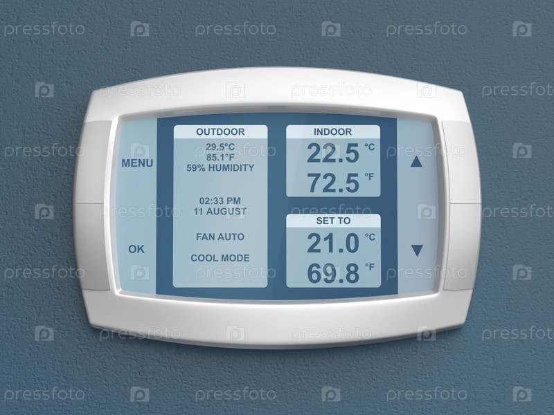 Умный термостат на синей стене